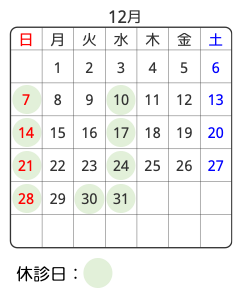 12月の診療日のご案内